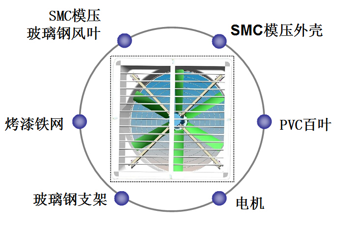 风叶:玻璃钢模压风叶组装成型;不老化、不变形、防腐防锈、美观;